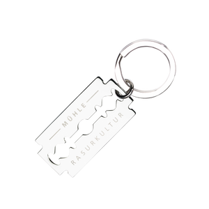 Are you a true MÜHLE fan through and through and do you want to show that publicly? Then this – figuratively speaking – razor-sharp accessory made of stainless steel should not be missing from your key ring. In size and contour, this little extra is modelled one-to-one on the original of one of our razor blades. With its shiny silver finish, the highly polished metal also reflects the design of numerous MÜHLE series, making it a real eye-catcher.