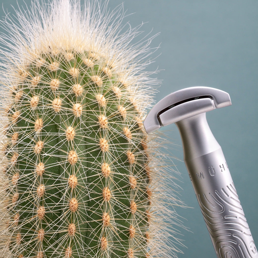 This is due to the new structure of the handle, which provides extra grip. Its fine design resembles fingerprints. At the same time, the handle is slightly longer than other MÜHLE shavers. This makes shaving your legs and other parts of your body (intimate area, armpits, chest) blissful experience.