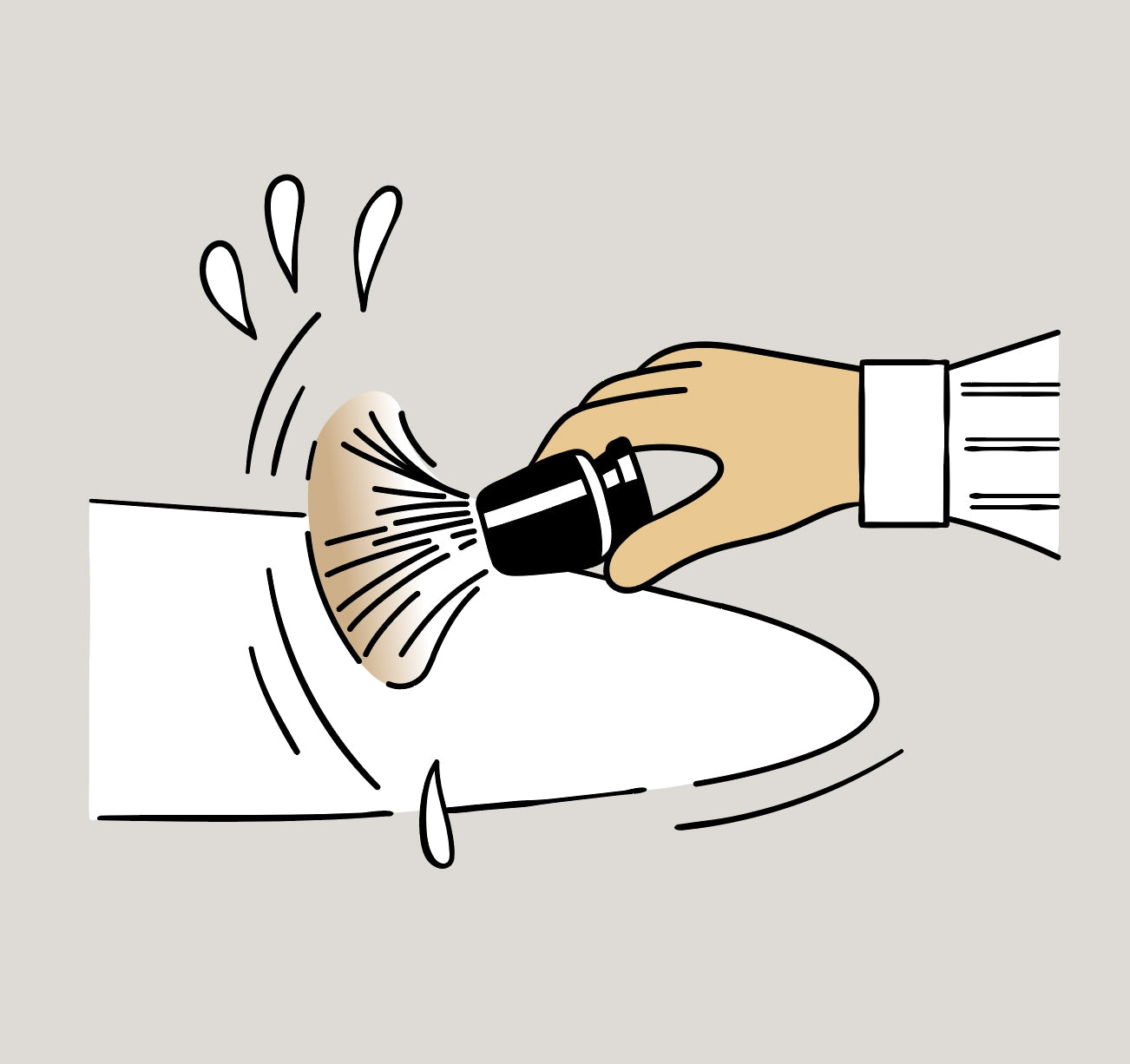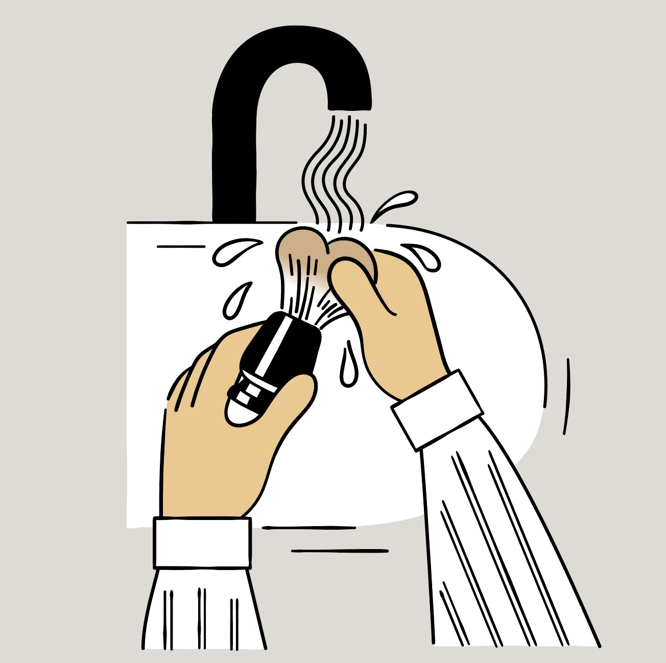 Therefore: It is strongly recommended that you rinse your brush after usage with clear water for a couple of seconds. After that, gently move your fingers through the brush hair whilst continued rinsing in order to clean it properly, so that especially on the inside of the brush no soap is remaining.