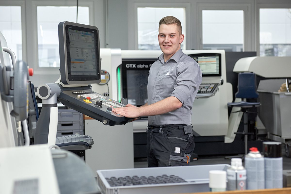 "When I started my apprenticeship at MÜHLE three and a half years ago, I already knew 20 of the 40 employees. I come from Stützengrün, and so it's only natural for me to work here. I'm a trained cutting machine operator with a specialisation in turning. That means I operate the CNC turning machines that we use to manufacture the base frames of the brushes and razors. Making these surfaces perfect is a challenge that we face day in, day out. This is quite varied work because there are always new shapes to prepare. We don't work with completed programmes here, but programme the machines based on sketches. I feel right in my job and I really enjoy working at MÜHLE."
