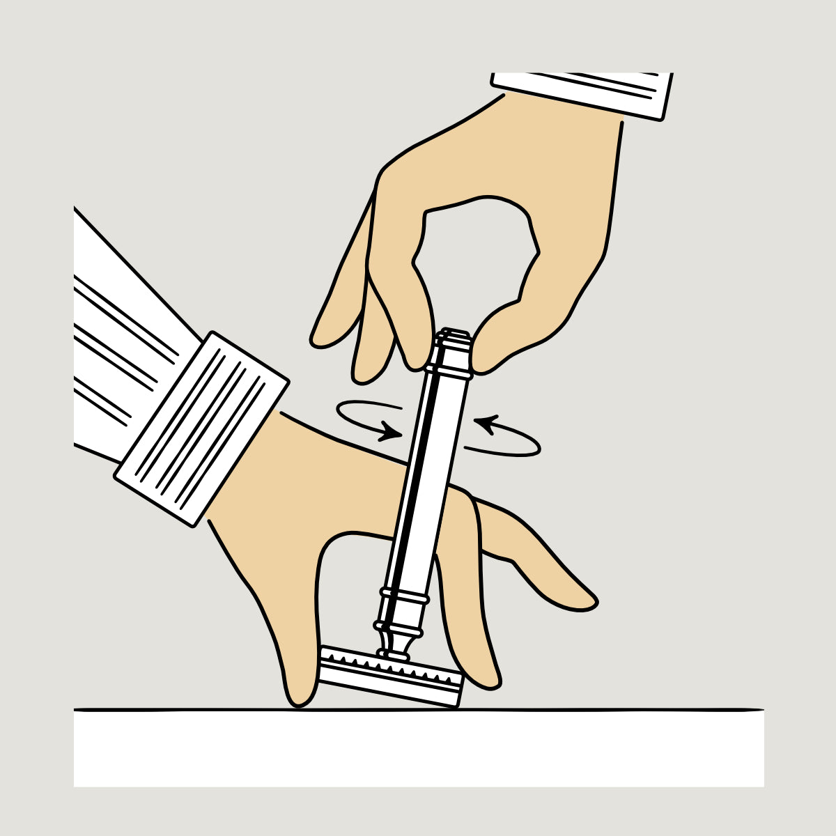 On MÜHLE safety razors, the blades slightly protrude on both short ends of the razor head and customers keep asking if this is meant to be and whether they can cut themselves with the protruding edges. Our answer is: yes, the blade is supposed to protrude and no, one cannot cut themselves as the edges are blunt. The protruding blade helps indicate that it has been inserted into the razor. Also, it is easier to grab here when changing the blades - no need to touch the cutting edge. When changing the blades, the safety razor should be facing downwards and be laid onto the table head first. In the next step, remove the handle, take off the lower part of the razor head, grab the blade with both thumb and index finger at the protruding end, then remove it and insert a new one.
