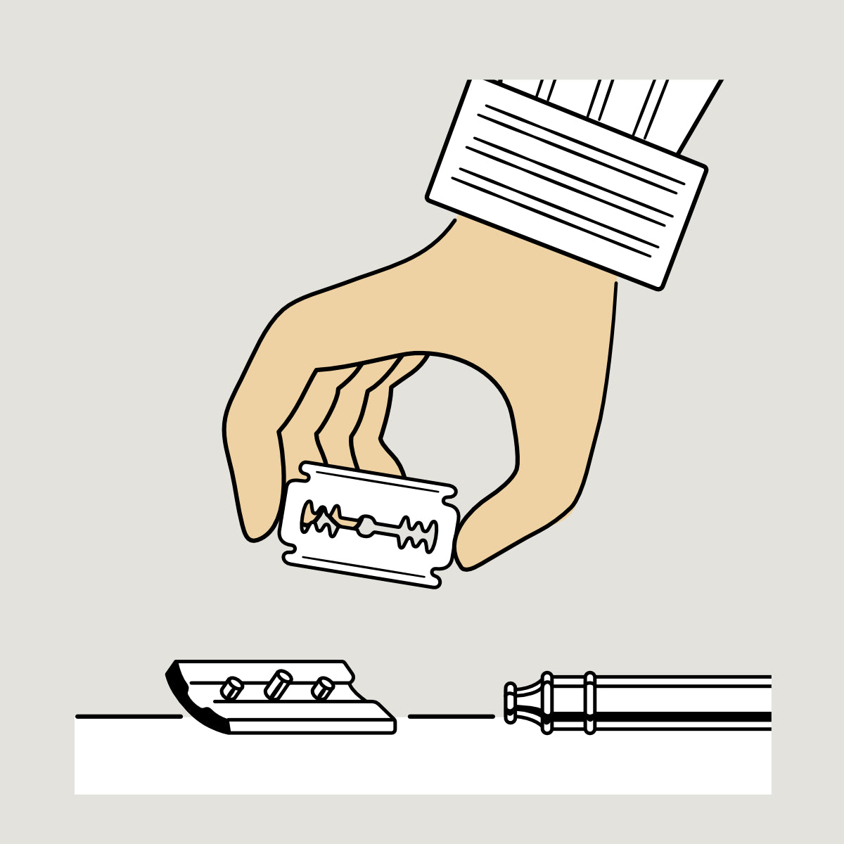 Sharpness is a property inherent to razor blades. Therefore, careful handling is indeed necessary. Proper handling of the blade reduces the chance of cutting yourself. Not without reason did King Camp Gillette call his invention, a razor with interchangeable blades made at the beginning of the 20th century, "safety razor" - being much safer than the common shaving razors used during this time. In general, a blade should be changed approximately after every 5 to 8 shaves - depending on your shaving behavior, the quality of the blades and the growth of the beard.