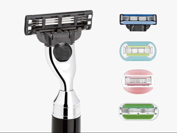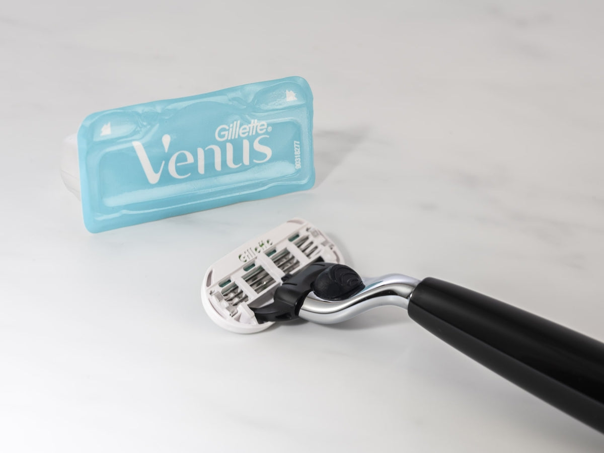 Around 20 years ago, Gillette made shaving socially acceptable for women with Venus. Since then, the blades have continued to be developed. Today, a variety of different Venus blade types are available on the market. What many people don’t know is that the blade holder of the Gillette Mach3 shaving system is also compatible with Venus*. This means that an elegant high-grade resin or ash wood RYTMO razor can be transformed into an elegant lady shaver in no time at all.